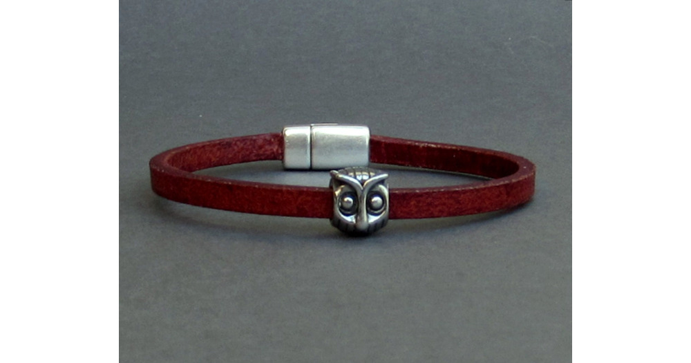 Mens Leather Owl Bracelet: Silver Plated, Magnetic Clasp