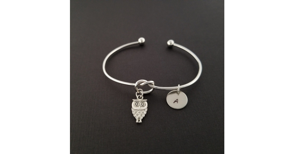 Owl Knot Bangle - Owl Knot Bracelet - Expandable Bangle - Charm Bangle - Owl Bracelet - Farm Jewelry
