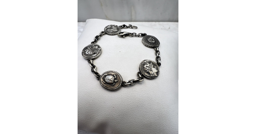 Ancient Greek Coin Bracelet – Athena Owl Medusa Helios Turtle Hercules Sterling Silver Charm B