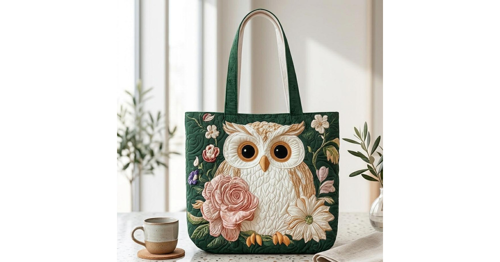 Quilted Owl Tote Bag, Floral Owl Tote, Cute Animal Tote Bag, Owl Lover Gift, Cottagecore Tote, Aesth