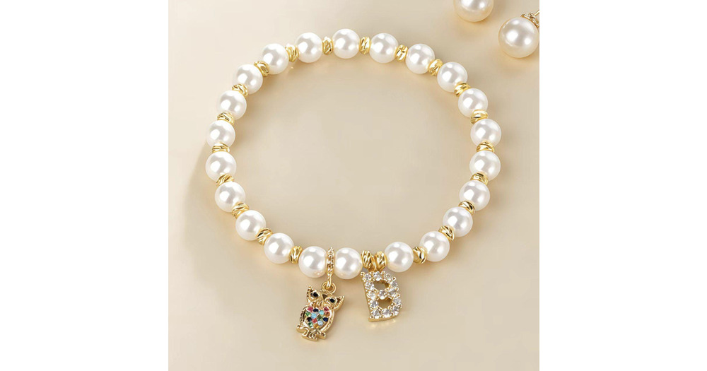Personalized Owl Bracelet, Letter Charm Bracelet, Pearl Beaded Jewelry, Meaningful Gift for Her, Cut