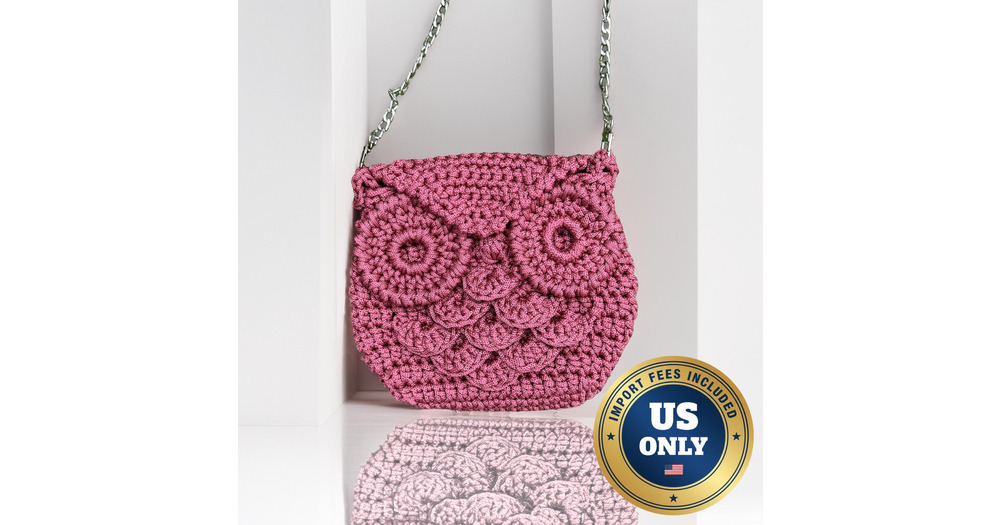 Raspberry Crochet Owl Purse: Festival Crossbody Bag, Silver Chain