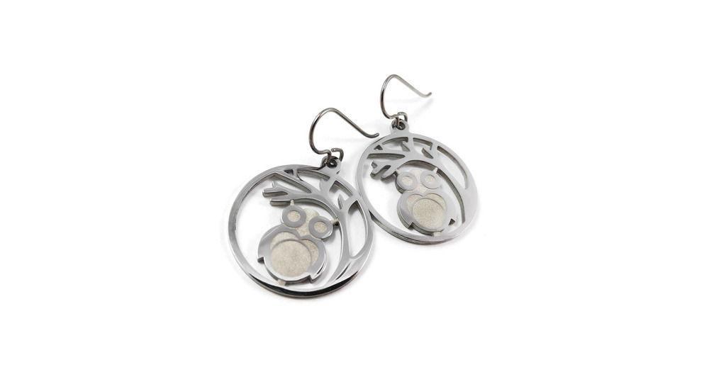 Silver owl dangle earrings - Pure titanium and stainless steel