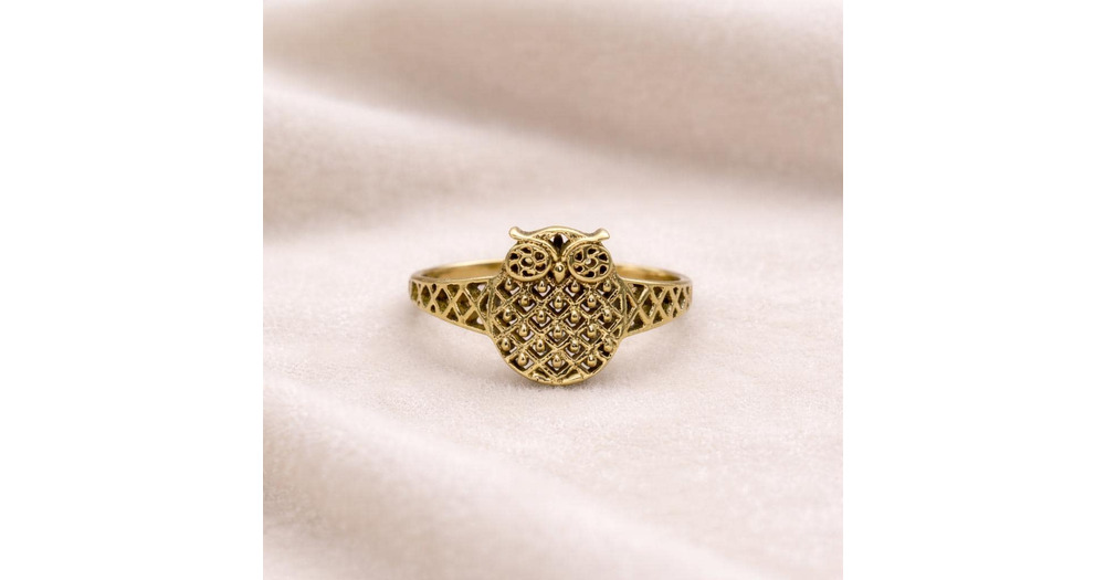 Gold Owl Ring, Vintage Owl Jewelry, Animal Ring, Minimalist Nature Ring, Boho Owl Band, Cute Bird Ri