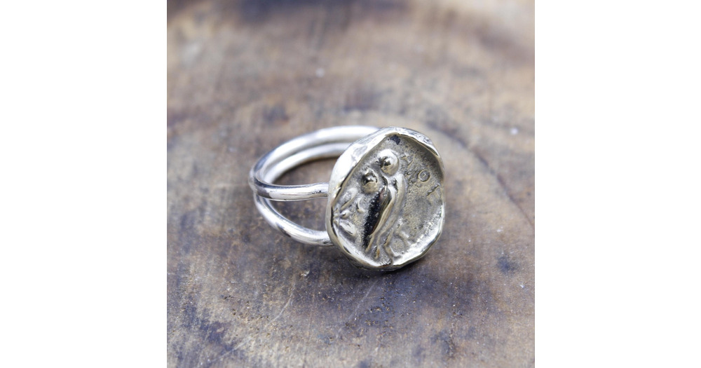 Handmade Sterling Silver Owl Coin Ring – Ancient Greek Jewelry