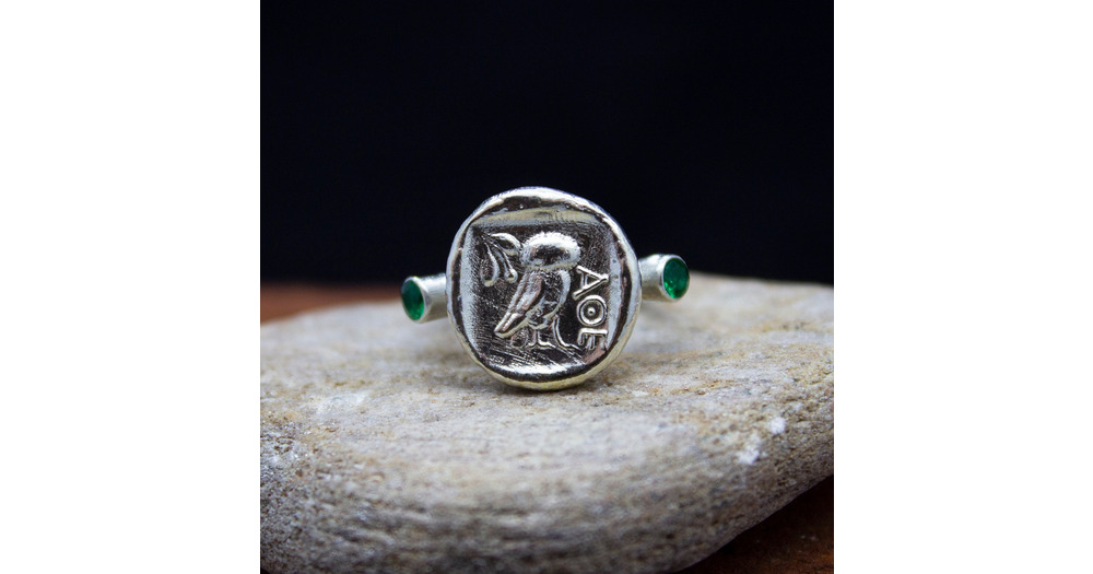 Greek Owl Coin Signet Ring | 925 Sterling Silver | Athena Owl Ring | Ancient Art  Jewelry | Handcraf