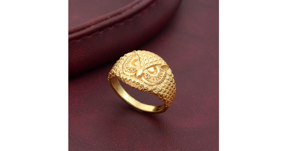 Gold Owl Statement Ring, Detailed Wise Owl Jewelry for Women, Intricate Bird Symbol Band, Unique Ani