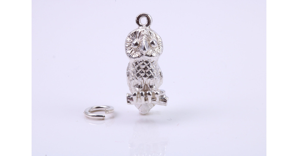 Owl Charm, Traditional Charm, Made from Solid 925 Grade Sterling Silver, Complete with Attachment Li