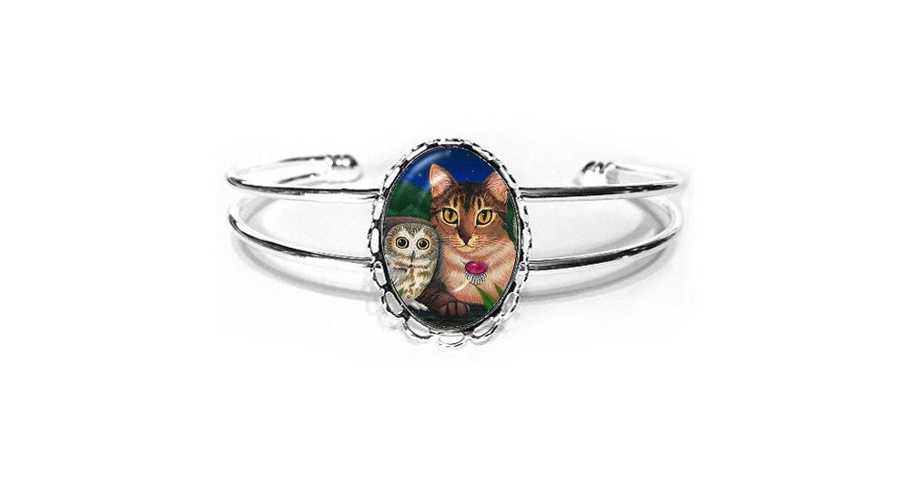 Abyssinian Cat Bracelet Saw Whet Owls Cat Painting Silver Fantasy Cat Art Cameo Bracelet 25x18mm Gif