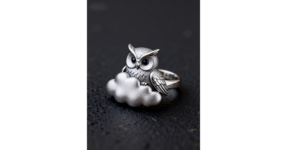 Sterling Silver Owl Puff Ring, Handmade Whimsical Bird Band, Customizable Dreamy Gift