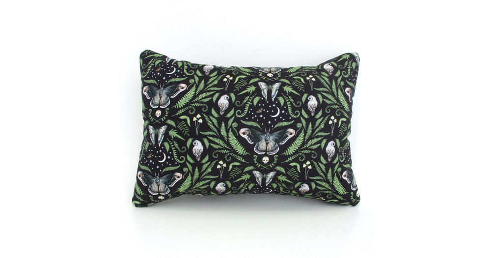 Lavender Buckwheat Pillow with Moth & Owl Print, 12" X 8 1/2" Accent Pillow