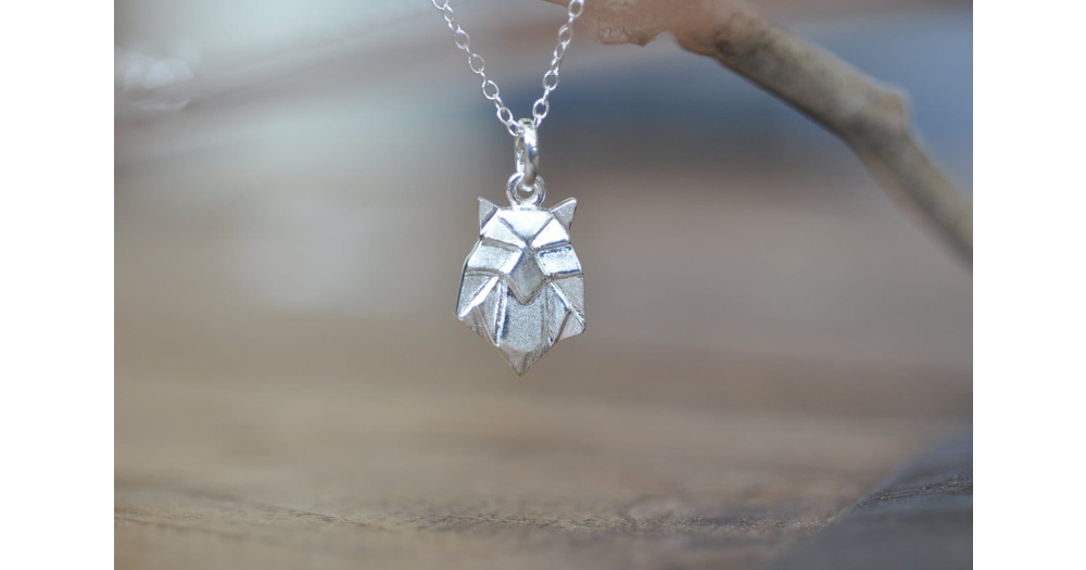 Sterling Silver Geometric Owl Necklace, Matte Finish
