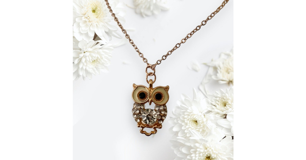 Diamanté Owl Necklace: Rose Gold Plated Glitzy Jewelry