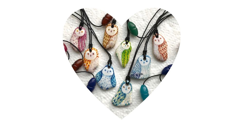 Cute Owl Pendant Necklace Hand Painted Sea Pottery Animal and Nature Owl Lover Gift Decorative Colou