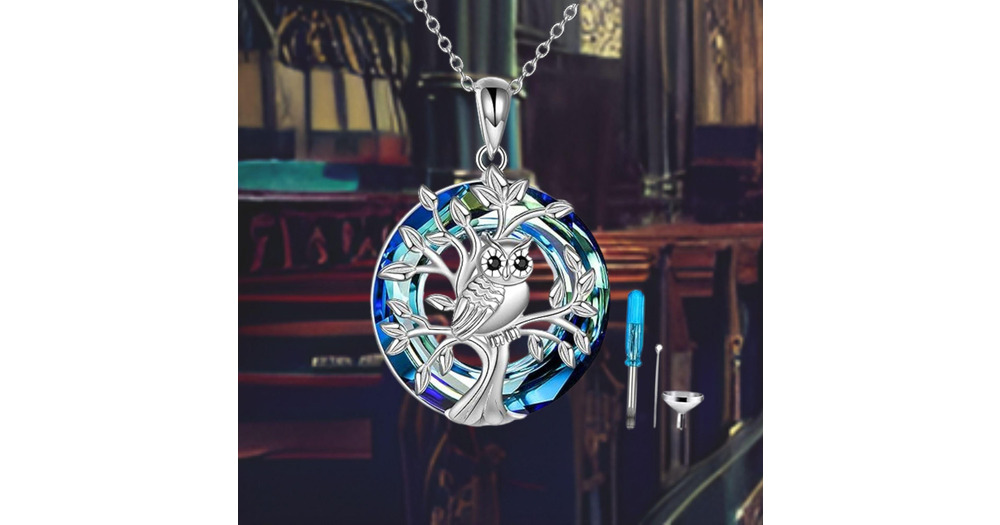 Owl Urn Necklace for Ashes with Abalone Shell 925 Sterling Silver Memorial Jewelry For Women