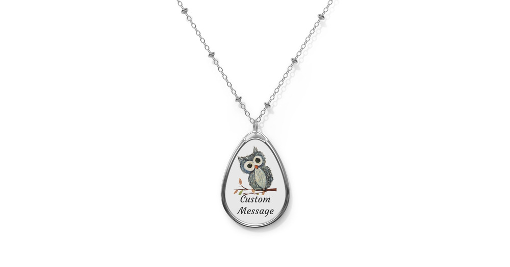 Blue Owl Custom Oval Pendant Necklace | Personalized Necklace