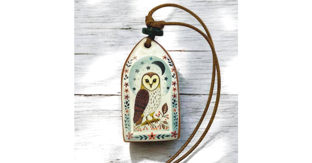 Handmade Terracotta Owl Pendant Necklace: Starlit Sentinel Design
