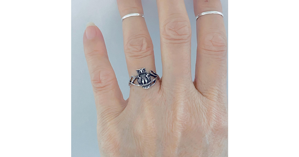 Sterling Silver Owl on Branch Ring: Animal Bird Rings, Spirit Jewelry