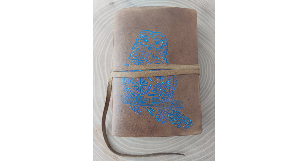 Handcrafted Full Grain Leather Journal: Owl Handpainted Design
