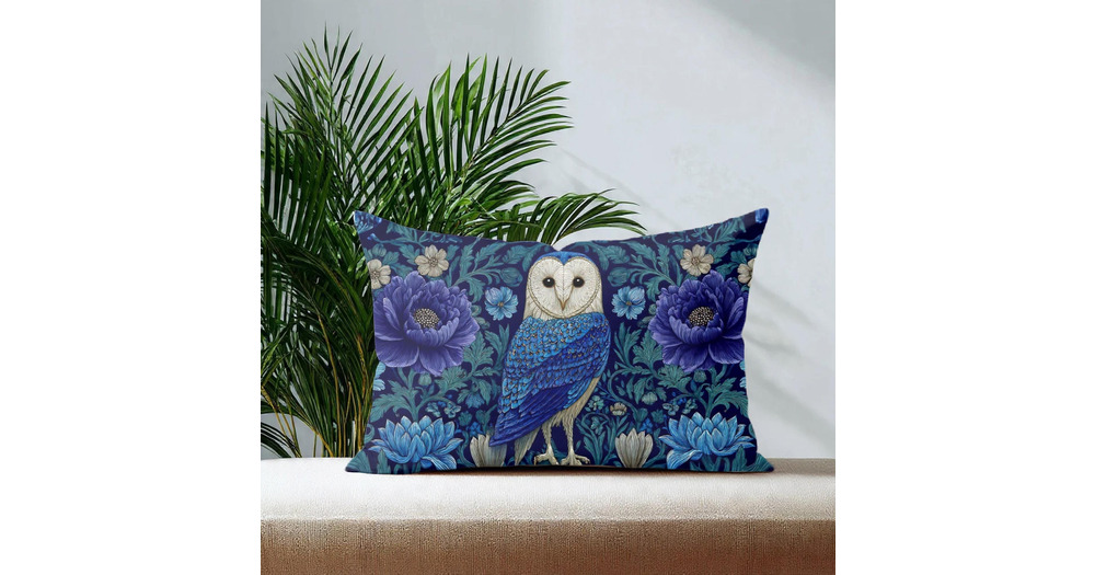 Barn Owl Lumbar Pillow with Insert, Whimsigoth Decor, Navy Blue Botanical Cushion, Owl Lover Gift, F