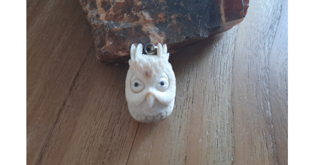 Owl Head Pendant, Owl Carving Deer Antler Bali Jewelry OW02