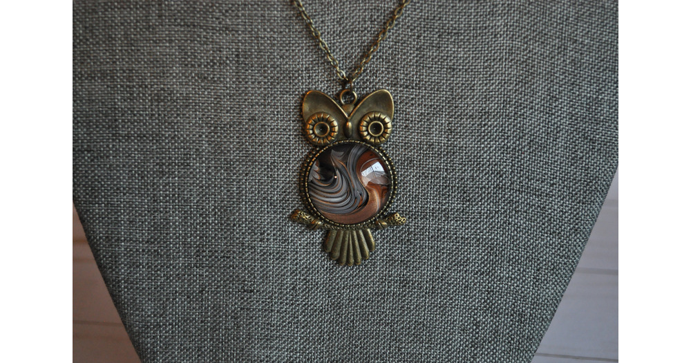 Paint pour jewelry, owl pendant, acrylic pour necklace, paint skin jewelry, acrylic skin necklace, a