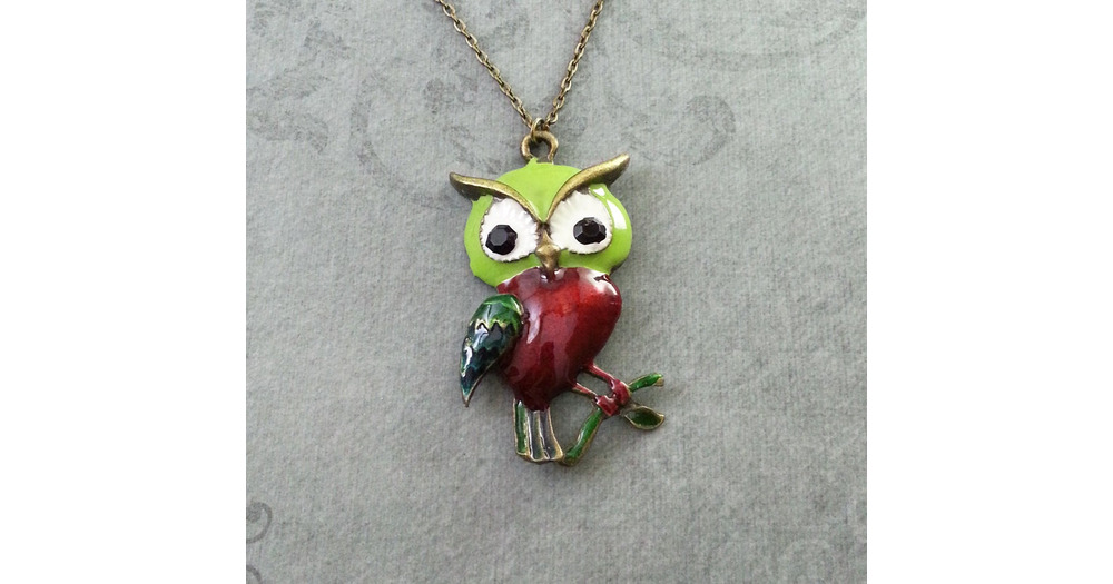 Owl Necklace LARGE Owl Jewelry Enamel Owl Charm Necklace Owl Pendant Necklace Owl Gift Colorful Owl