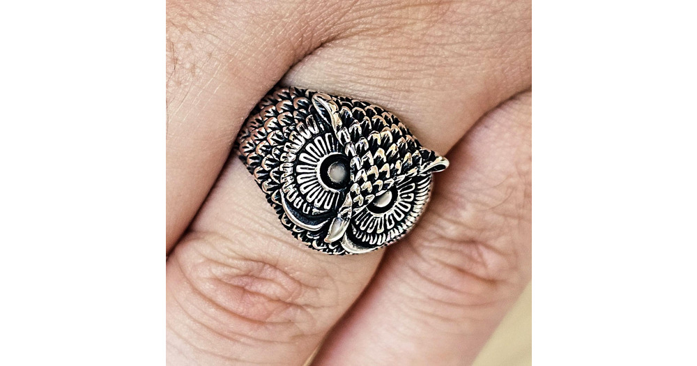 Owl Silver Ring, Men's Wisdom Animal Ring, Handmade Oxidized Jewelry