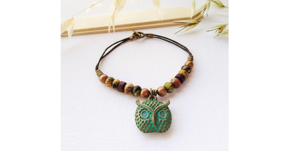 Bracelet hibou, bracelet bronze, bracelet bohème