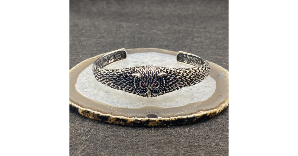 Handmade 925 Sterling Silver Heavy Owl Motif Cuff Bracelet | Wisdom Symbol Bangle