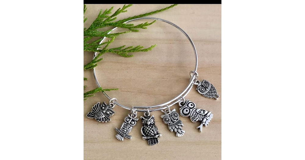 Silver Owl Charm Bangle Bracelet: Expandable, Adjustable, Owl Lover Gift