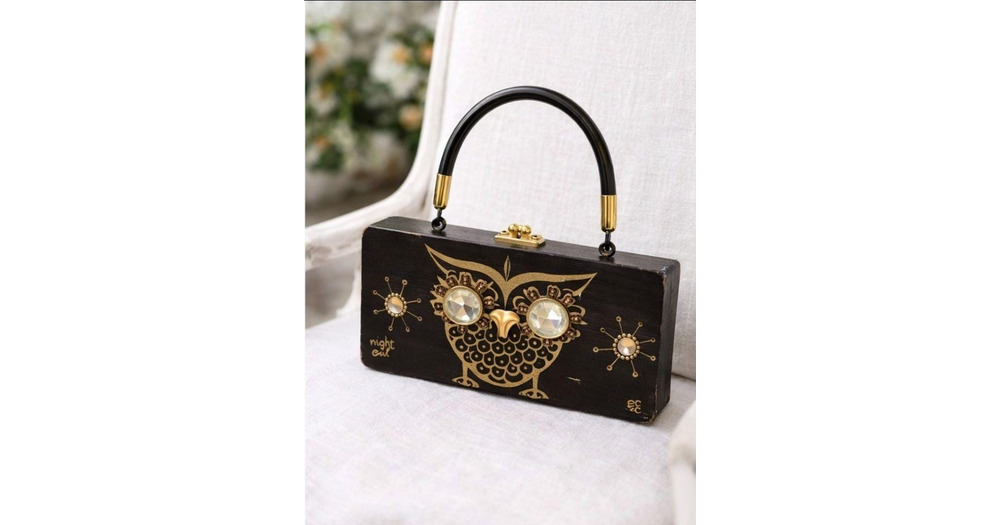 Vintage Enid Collins Night Owl Wooden Box Bag – 1967 Handbag with Original Box