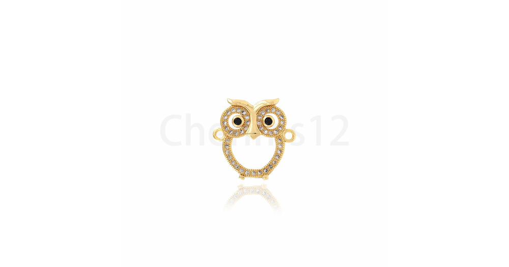 Owl Connector,Bird Connector, Micropavé CZ Bird Charm,18K Gold Filled Flying Connector, DIY J