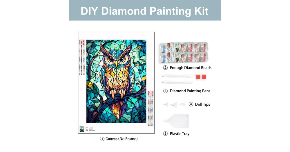 Stained Glass Owl Diamond Painting Kit, DIY 5:7 Ratio Wall Art with Vibrant Colors, Nature-Inspired