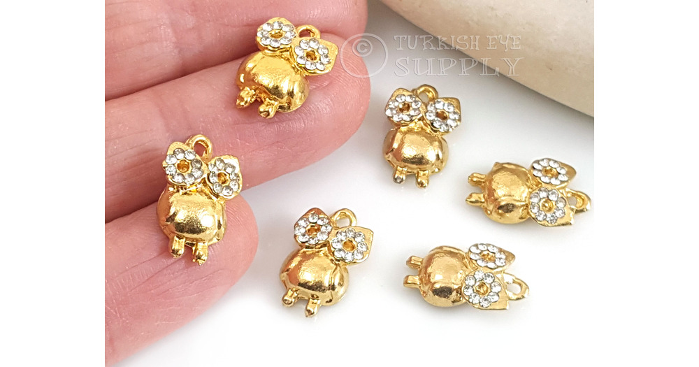 Gold Pave Owl Charm, Mini Gold Owl Pendant, Gold Owl Findings, Gold Jewelry Findings, Bird Charms, 1
