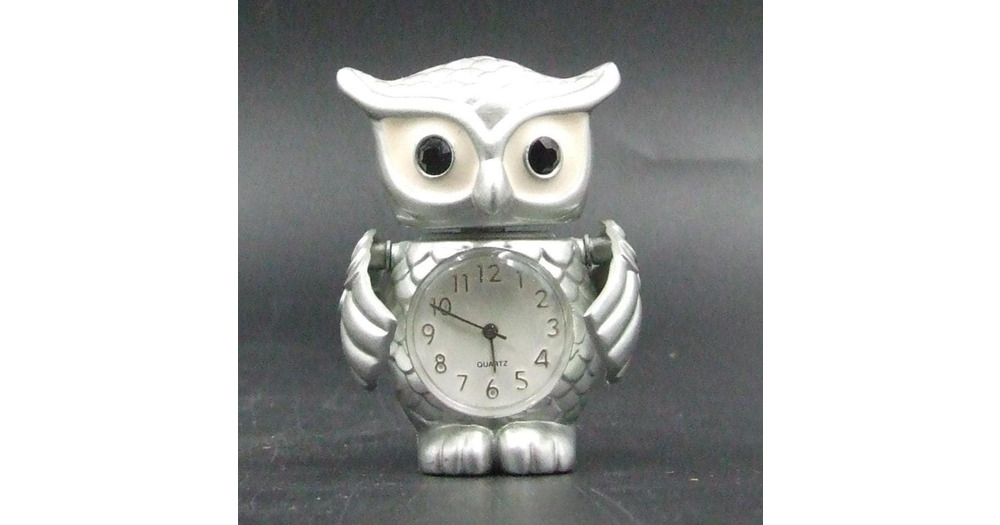 Articulated Silver Owl Quartz Clock – Rotating Head, Hinged Wings