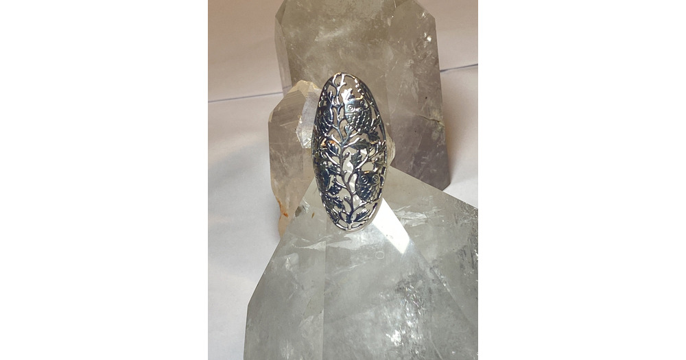 Owls ring long filigree ornate band sterling silver women girls size 11.75