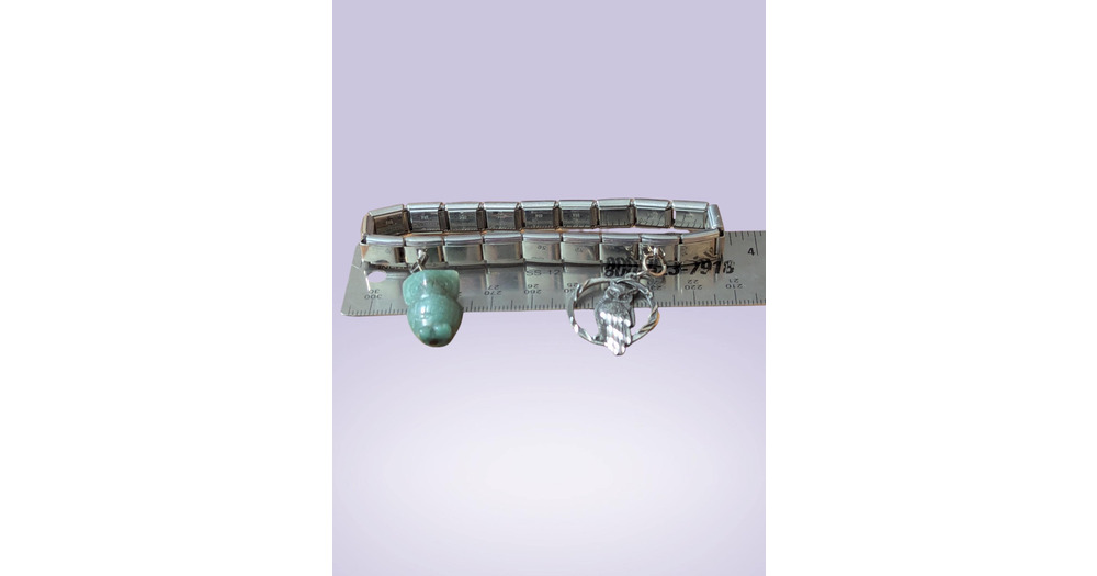Vintage Owl Charm Bracelet with Double Hearts, Pewter and Jade Charms