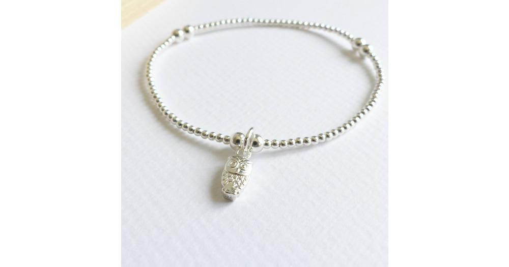 Sterling Silver Beaded Owl Bracelet – Dainty Charm, Stacking Jewelry