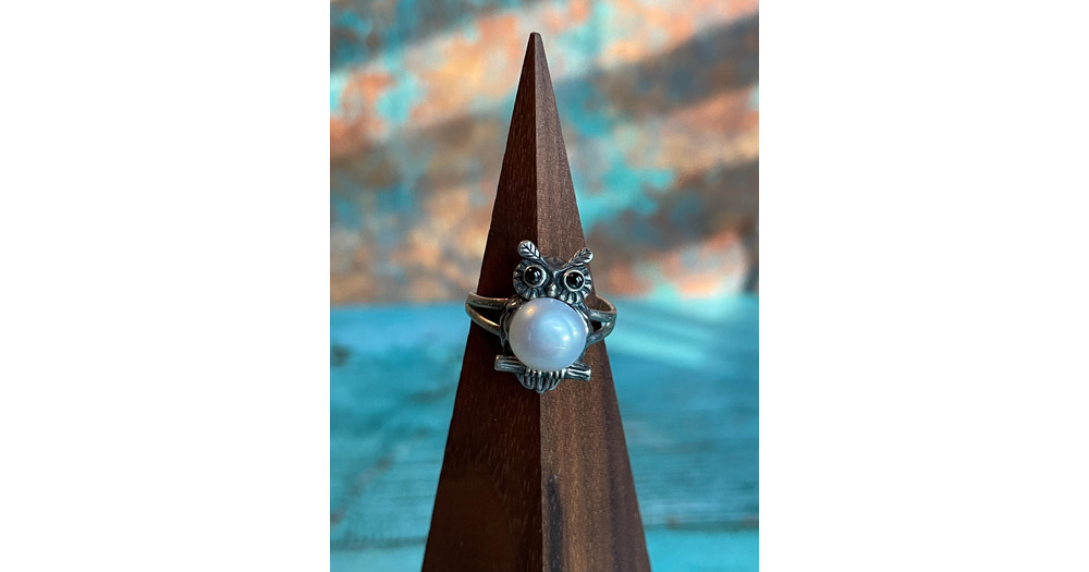 Sterling Silver and Pearl Owl Adjustable Ring by Designer Soms