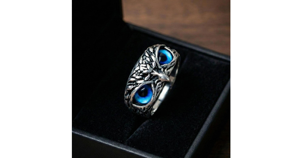 Gothic Owl Ring, Gemstone Eyes, Adjustable Statement Jewelry