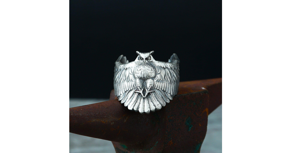 Silver Owl Ring, Handmade 925 Sterling Silver Bird Ring, Men’s Nature Jewelry, Detailed Owl Si