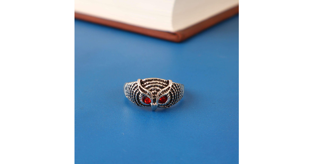 Owl Brass Ring with Red Stone Eyes, Vintage Animal Statement Ring, Gothic Boho Jewelry, Antique Styl
