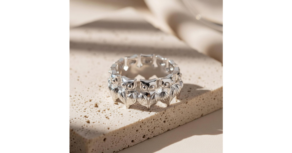 Owl Eternity Ring 925 Sterling Silver Polished Finish Nature Band Bird Lover Gift Unisex Jewelry