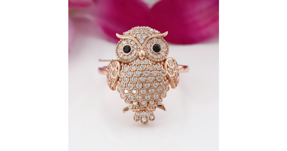 Antique OWL Diamond Ring, Nature Inspired Owl Lover Bird Ring, Flat Owl Diamond Ring, Unique Micro P