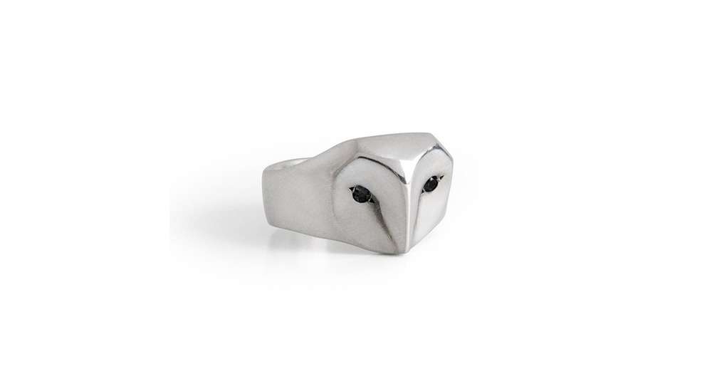 Sterling Silver Owl Ring with Black Diamond Eyes