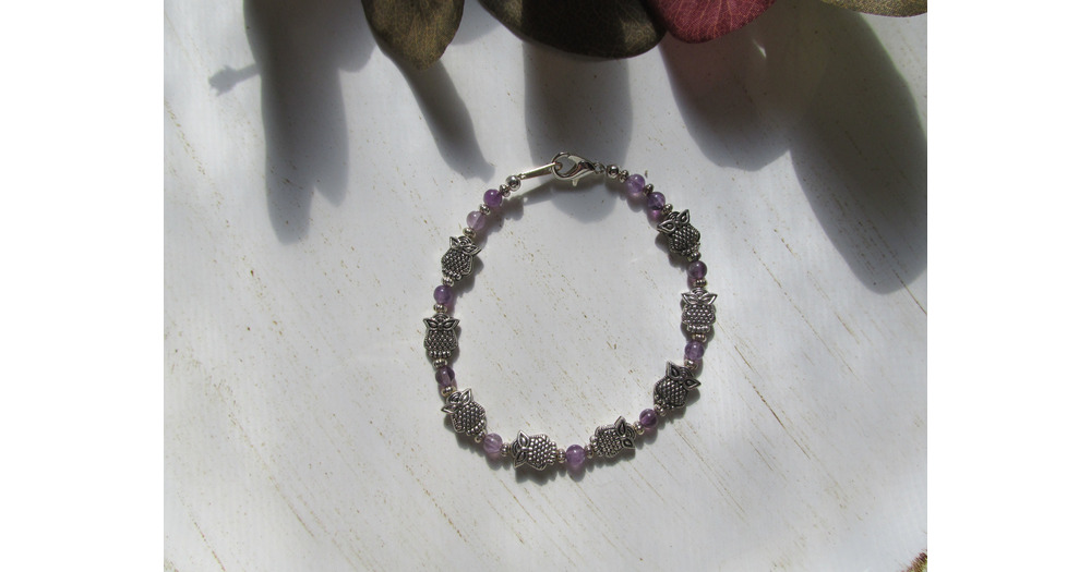 Amethyst Owl Bracelet gift for her, layering, stackable, boho, stylish, unique, fashionable, chic, c