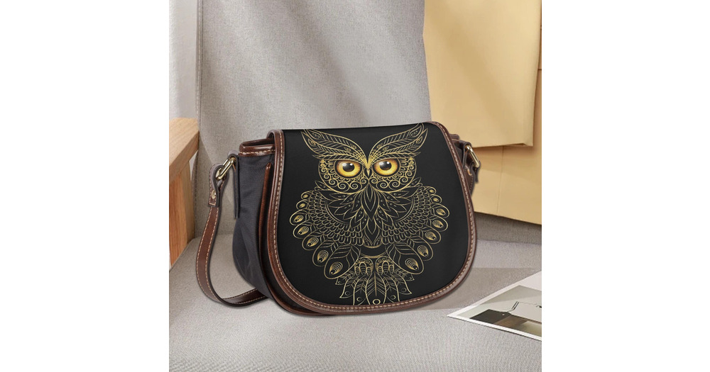 Saddle Bag with Golden Owl Design: Day to Night Crossbody (PU Leather)