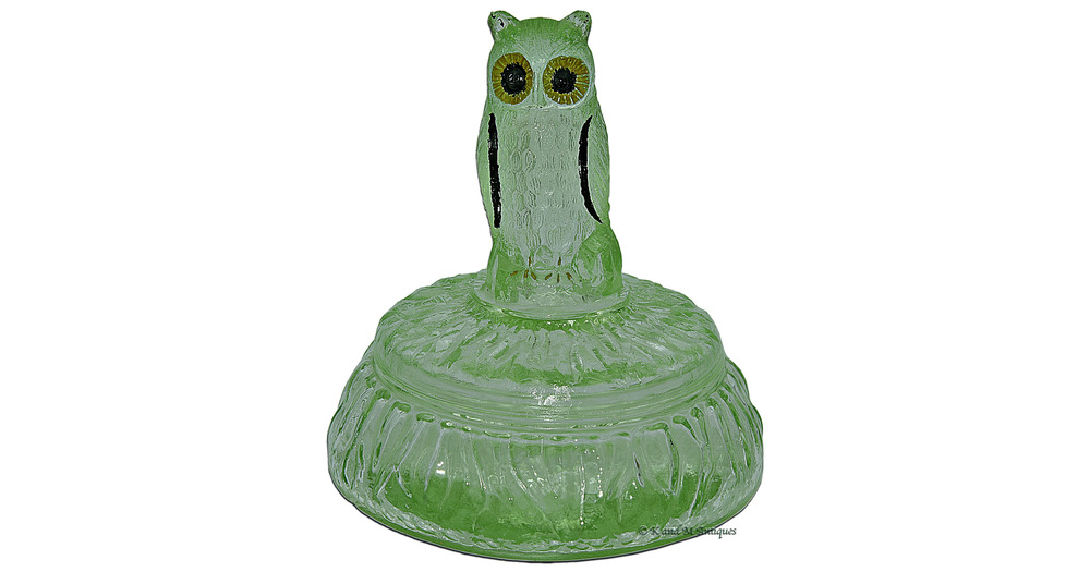 L.E. Smith Woodsy Owl Green Powder Jar RARE