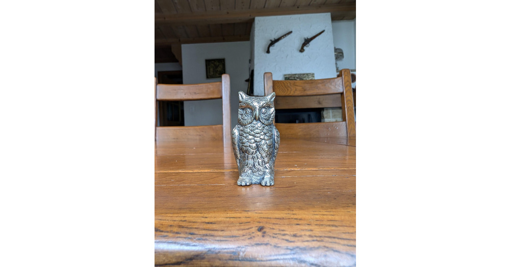 Vintage Cast Metal Owl Figurine: Rustic Desk Decor